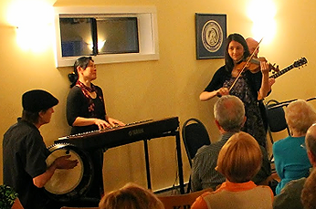 Come out for an evening of mesmerizing music in a wonderful listening environment! The Daphnes play modern chamber-pop compositions featuring Monica Schley (harp and voice), Nate Omdal (bass) and Julie Baldridge (violin). This unconventional group draws sounds from neo-folkster M. Ward, 90s alternative bands Mazzy Star and Cowboy Junkies, and jazz musicians Pharaoh Sanders and Alice Coltrane.